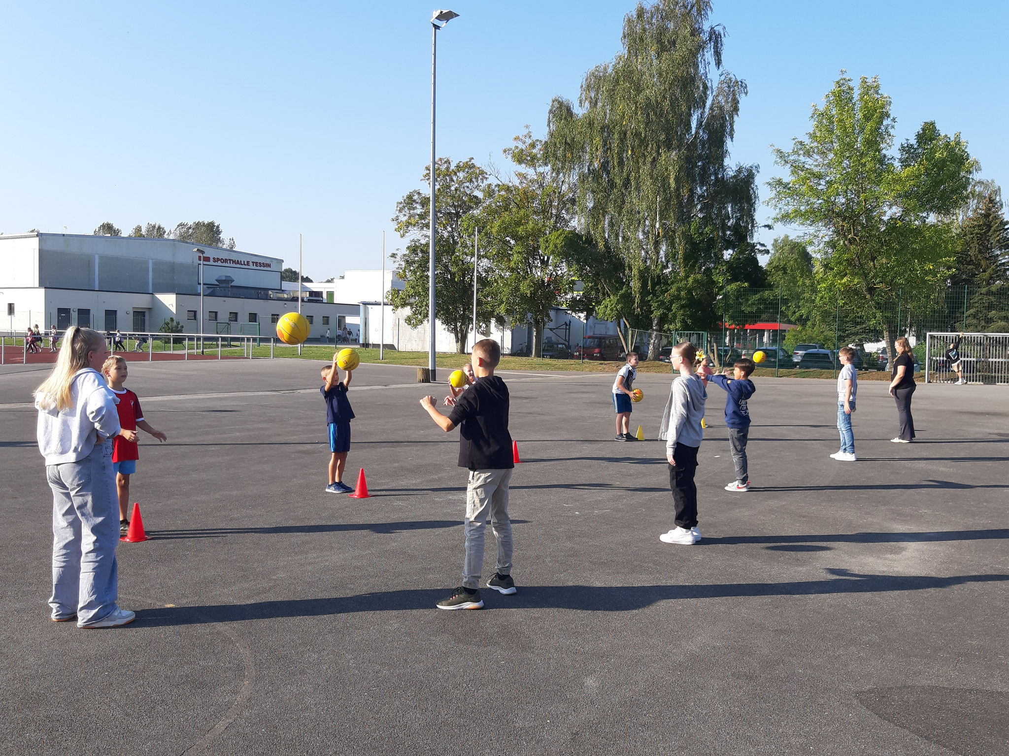 Am 18. Juni 2025 “drehte“ sich auf unserem Schulgelände alles um den Sport. In den drei leichtathletischen Disziplinen Lauf-Sprint über 50 Meter, Weitwurf mit 80g schweren Schlagbällen und dem Weitsprung wurden Kräfte gemessen und die drei leistungsstärksten Mädchen und Jungen aller Altersklassen ermittelt. Zu Recht waren diese Kinder ganz besonders stolz auf ihre Urkunden und Medaillen.