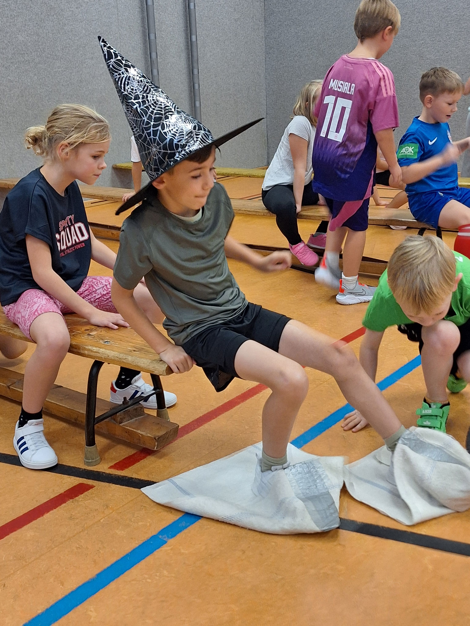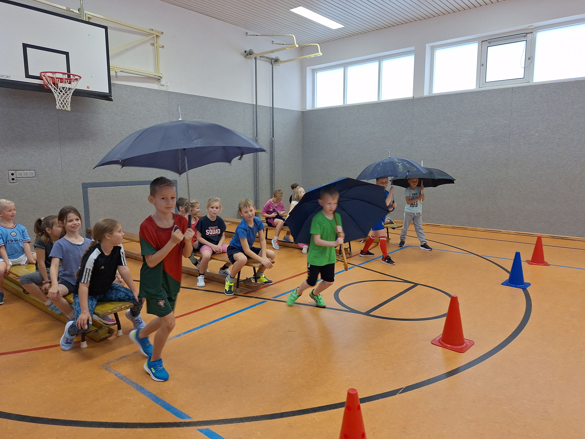 Huiiiii, schnell wie der Wind waren die Erst- und Zweitklässler bei den diesjährigen Herbststaffeln. Regenschirmlauf, Drachenflug, Riesen-kürbisrollen, Pfützenwischer, Laternen- Hexenbesen- und Nusslauf lauteten einige Staffelnamen.
