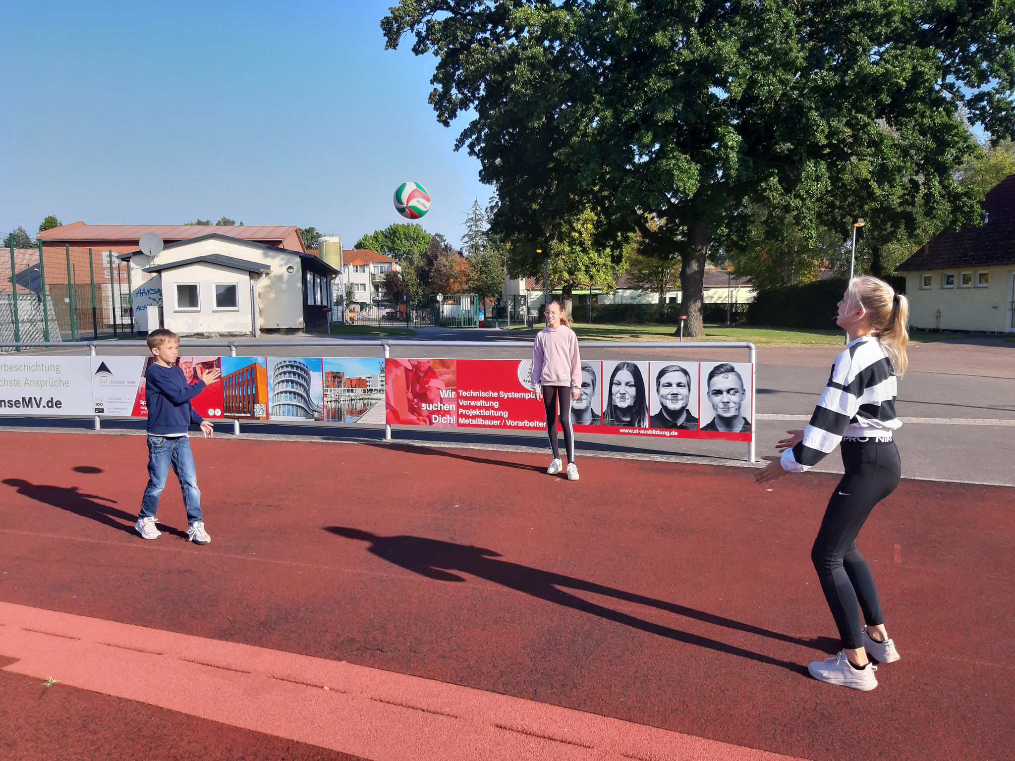 Ebenso danken wir dem Team um Herrn Rosenow vom Ordnungsamt Tessin! Die Laufstrecke wurde perfekt vorbereitet. Bereits in den Wochen zuvor konnten wir im Unterricht trainieren. Am Sporttag selbst bekam die Strecke dann früh morgens noch einmal den perfekten Feinschnitt.