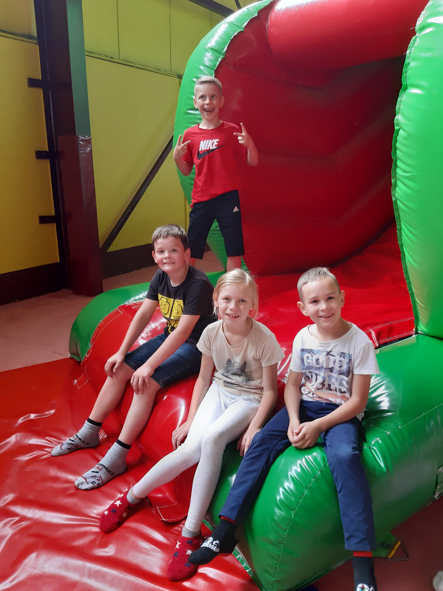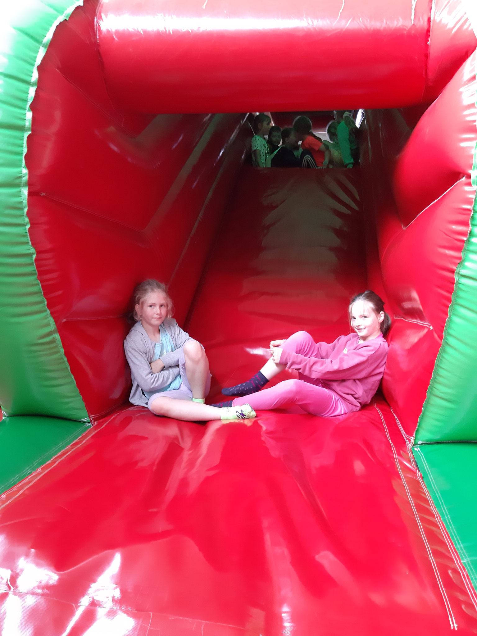 Die gesamte Grundschule machte sich am Mittwoch, 17. Juli auf den Weg nach Roggentin. Mit Bus oder Bahn erfolgte die Anreise. Angekommen, ging es nach kurzer Belehrung und Platzsuche direkt rein ins spielerische Abenteuer: Kletterlandschaft, Rutschen, Trampolin- und Fußballfeld, Wabbelberg, Hüpfburg-Krokodil etc. wurden sofort erobert und genauestens getestet.