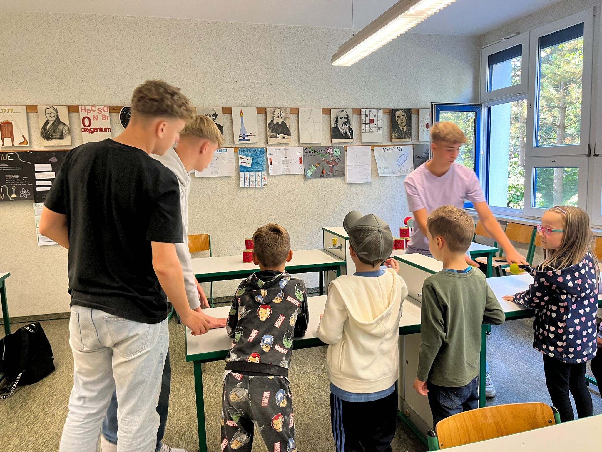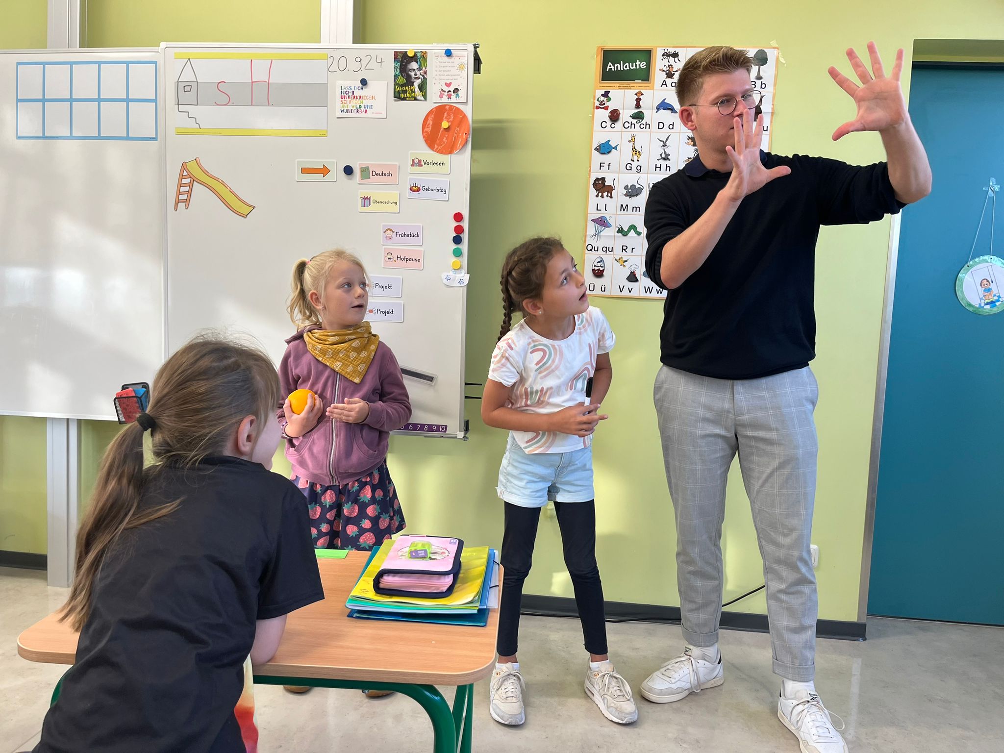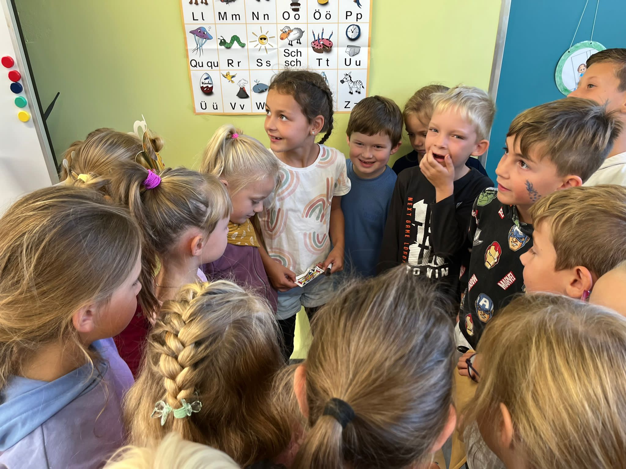 Vom 18.09. – 08.10.2024 absolvierte Jonas Kirchenberg sein Orientierungspraktikum an unserer Grundschule. Er ist nicht nur angehender Lehrer, sondern bereits ein professioneller Zauberer, weshalb wir mit ihm magische Momente erleben durften. Die Kinder wurden von seinen Künsten buchstäblich verzaubert. Mit leuchtenden Augen wurden sie Zeugen, wie z.B. Spielkarten auf unerklärliche Weise verschwanden und in völlig unversehrten Orangen wieder auftauchten oder Schüler plötzlich die Karten ihrer Klassenkameraden in den Händen hielten. Wie schön wäre es, wenn der Zauberlehrer die Kinder doch dauerhaft in solch aufmerksame und gespannte Schüler verwandeln könnte :-)